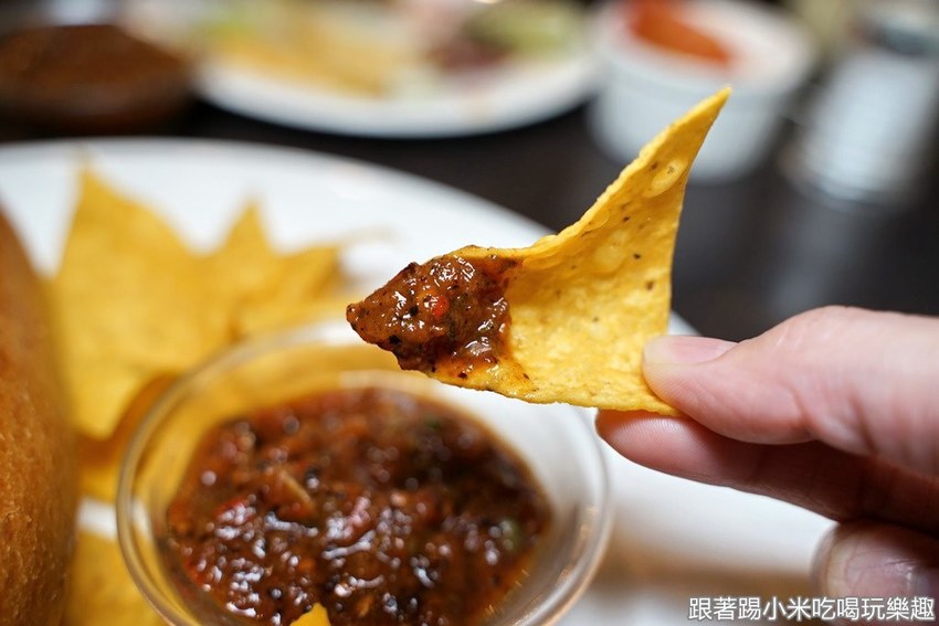 享用前記得先攪拌均勻,再直接連餅皮一起切開,完全是道地墨式沙拉料理的呈現,餅皮還蠻酥脆的,帶點墨西哥辣椒的椒香甜味,再配上肉醬跟蔬菜,是個稱職的開胃菜!