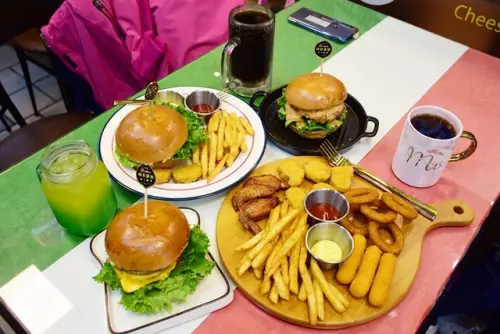 【黃金招牌鱈魚堡】:這邊不只豬肉牛肉,還有海鮮堡可以選擇唷!!鱈魚炸得酥脆,配上酸甜的蜂蜜芥末醬,就像是有一隻魚在我嘴裡活潑的游來游去呢!這一道很適合喜歡清爽滋味又想享受美食的人品嘗,清爽的感覺就像佇立在海邊吹著海風一樣,咬在嘴裡的鱈魚堡飄散出海的味道,像是從大口吃肉的西部牛仔跳到了熱情洋溢的夏威夷!!這一道搭配上沖繩奶茶,居然有種難以言喻的搭,吃完漢堡後喝一口沖繩奶茶,原本以為在熱情四射的夏威夷,睜開眼後原來是在舒服放鬆的沖繩呀!