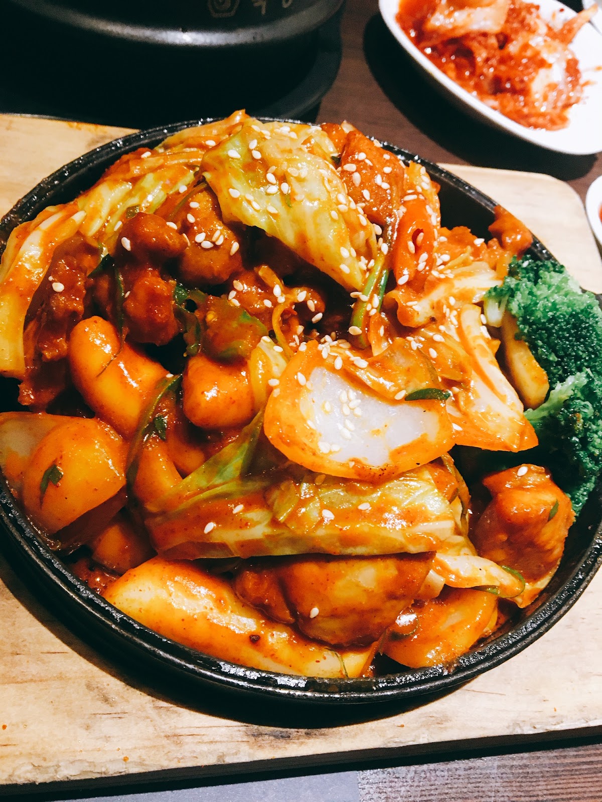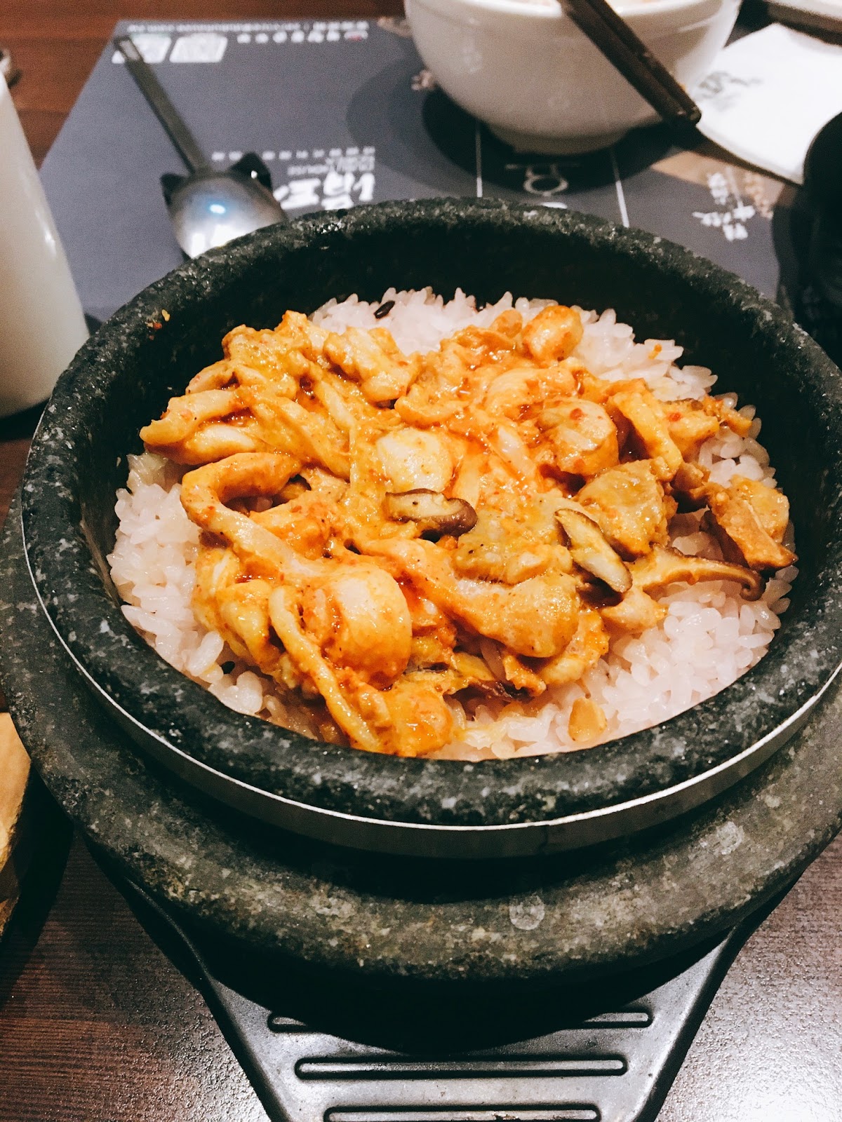 我們另外點了春川辣炒雞,涓豆腐的春川辣炒雞很夠味,有雞肉跟年糕還有高麗菜,對不吃辣的人來說是有點辣的,味道上我覺得還算不錯吃,喜歡吃辣的人可以點來吃看看。