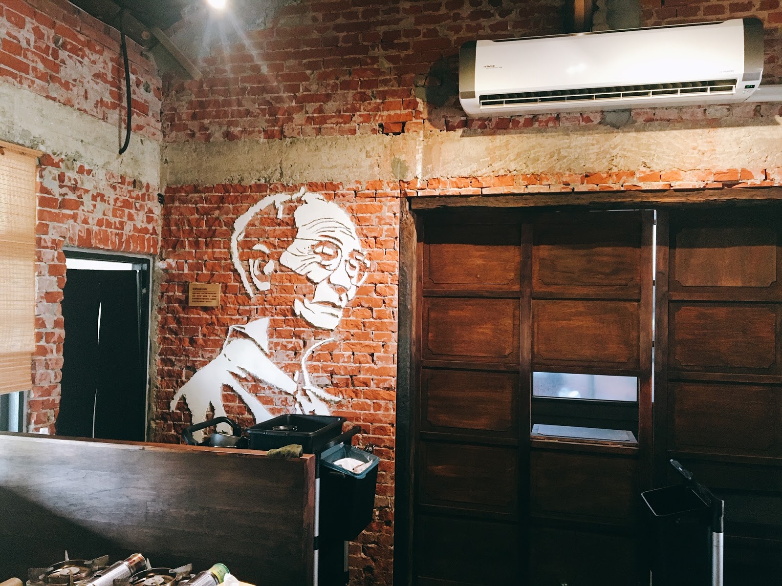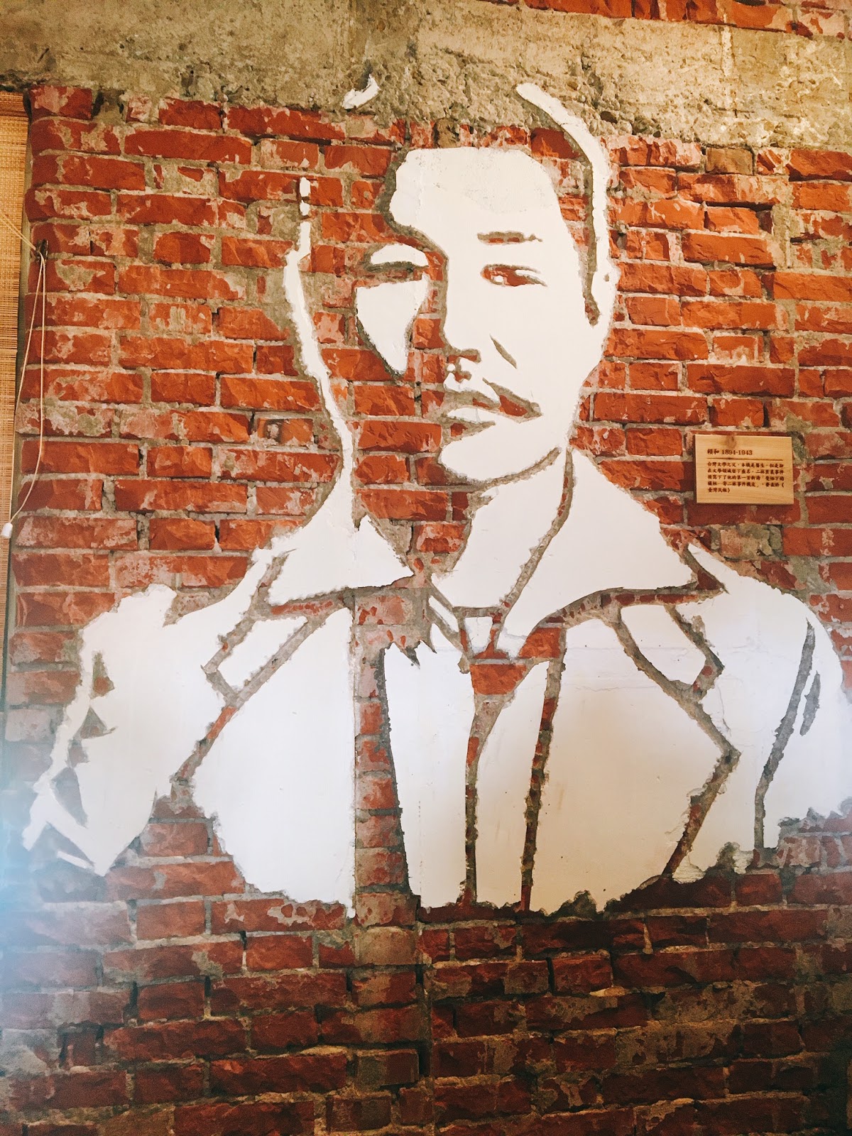 整間餐廳牆上有16個不同的偉人肖像,我蠻喜歡這種風格,在原本建築上加入巧思,又不影響原本的建築風格,個人覺得維持紅色老舊裸磚,刷上一層刷白混凝土,讓建築與肖像融合成為一體,這樣的建築風格非常強烈。