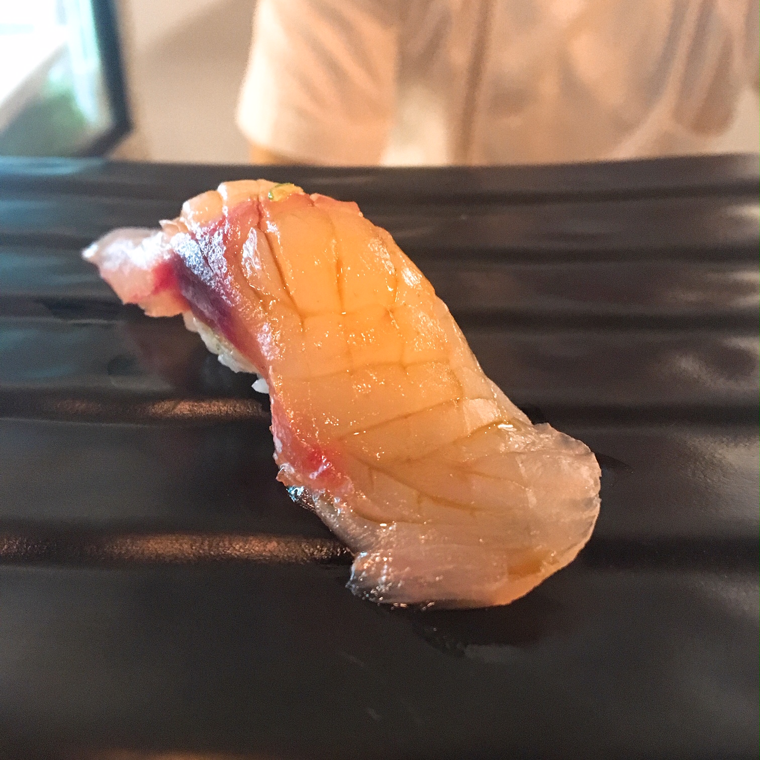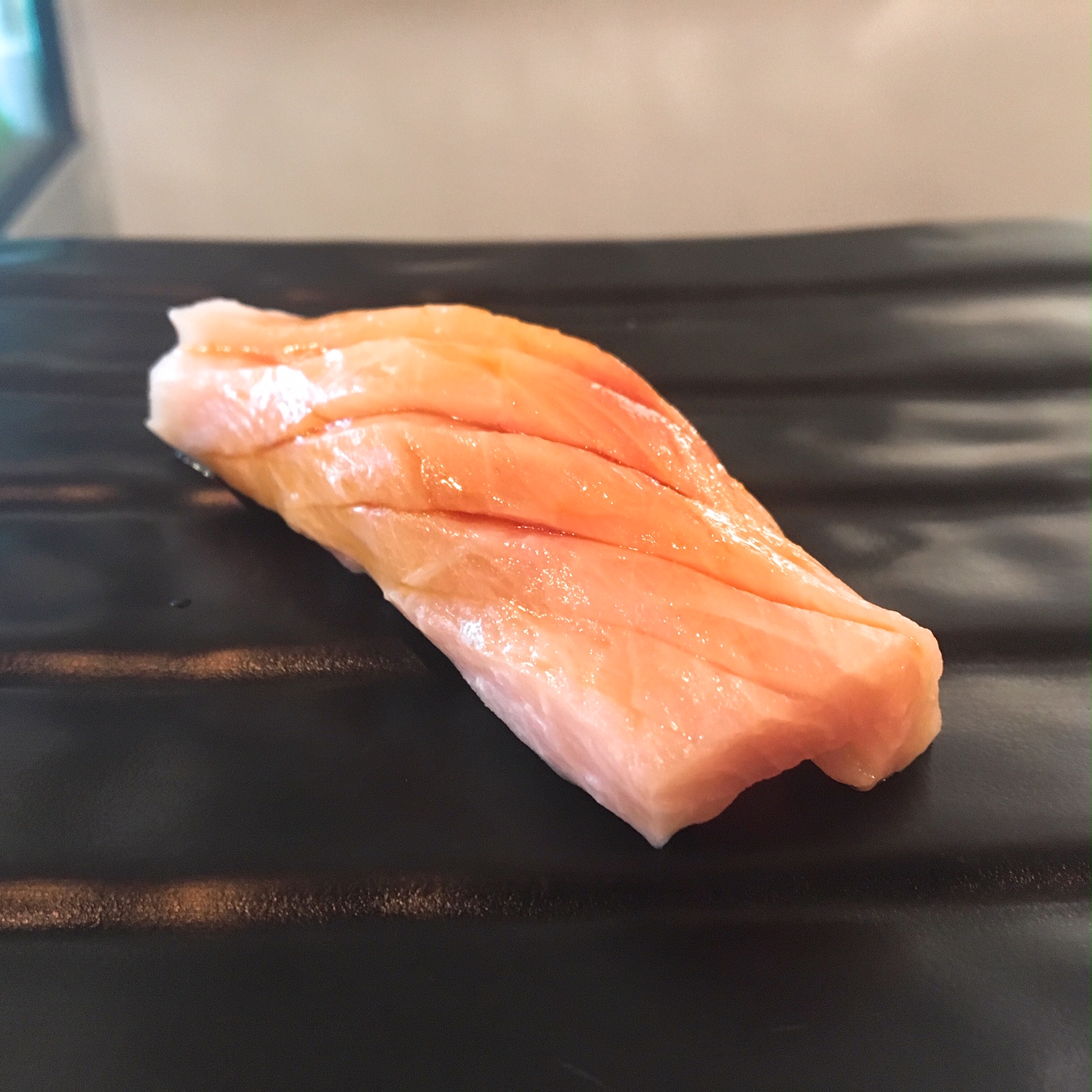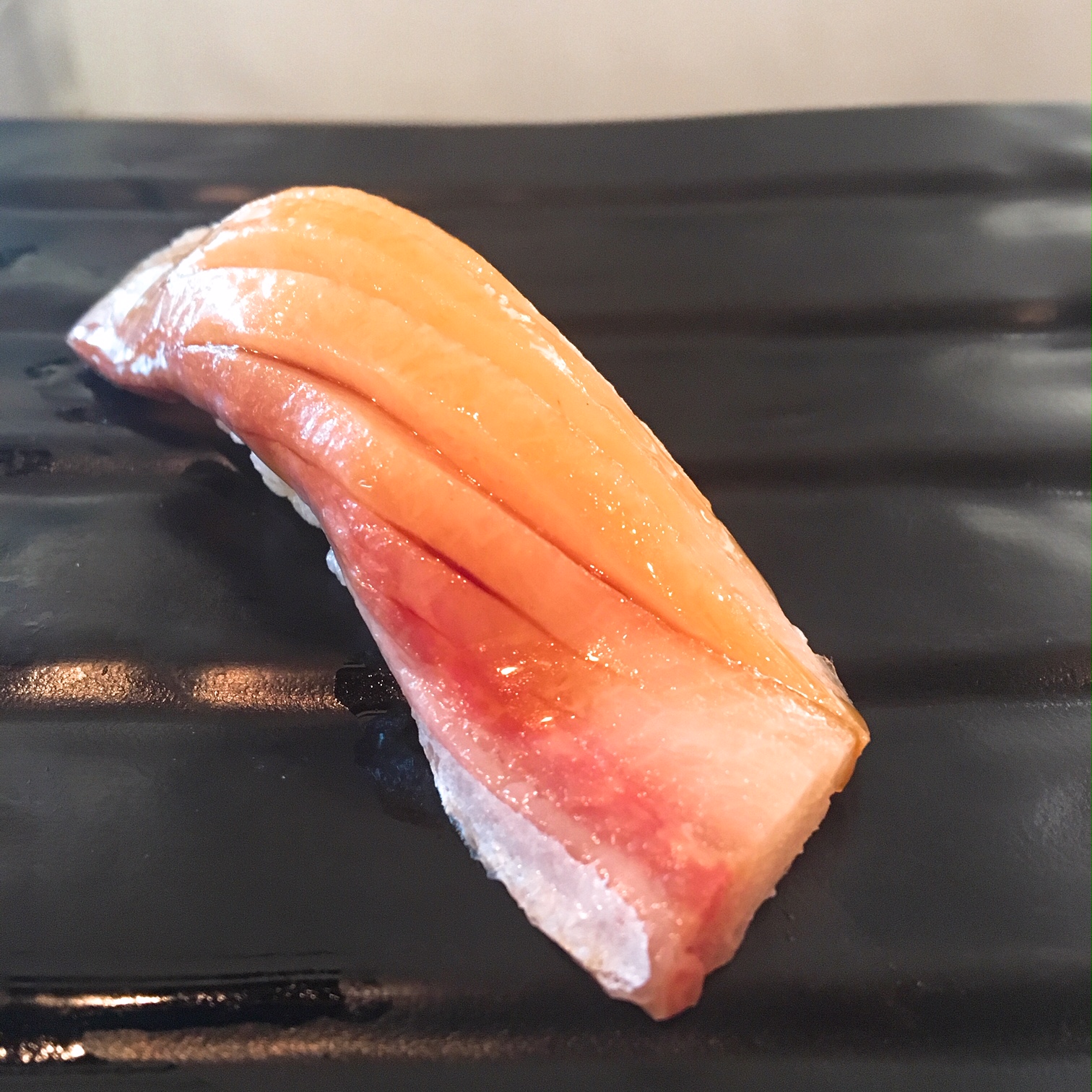 第三道上的是青魽肚握壽司,其實我沒吃過青魽,但看菜單有推薦就點來吃看看,沒想到非常好吃,油脂很飽滿,而且吃起來口感很棒,我也很喜歡這道握壽司。