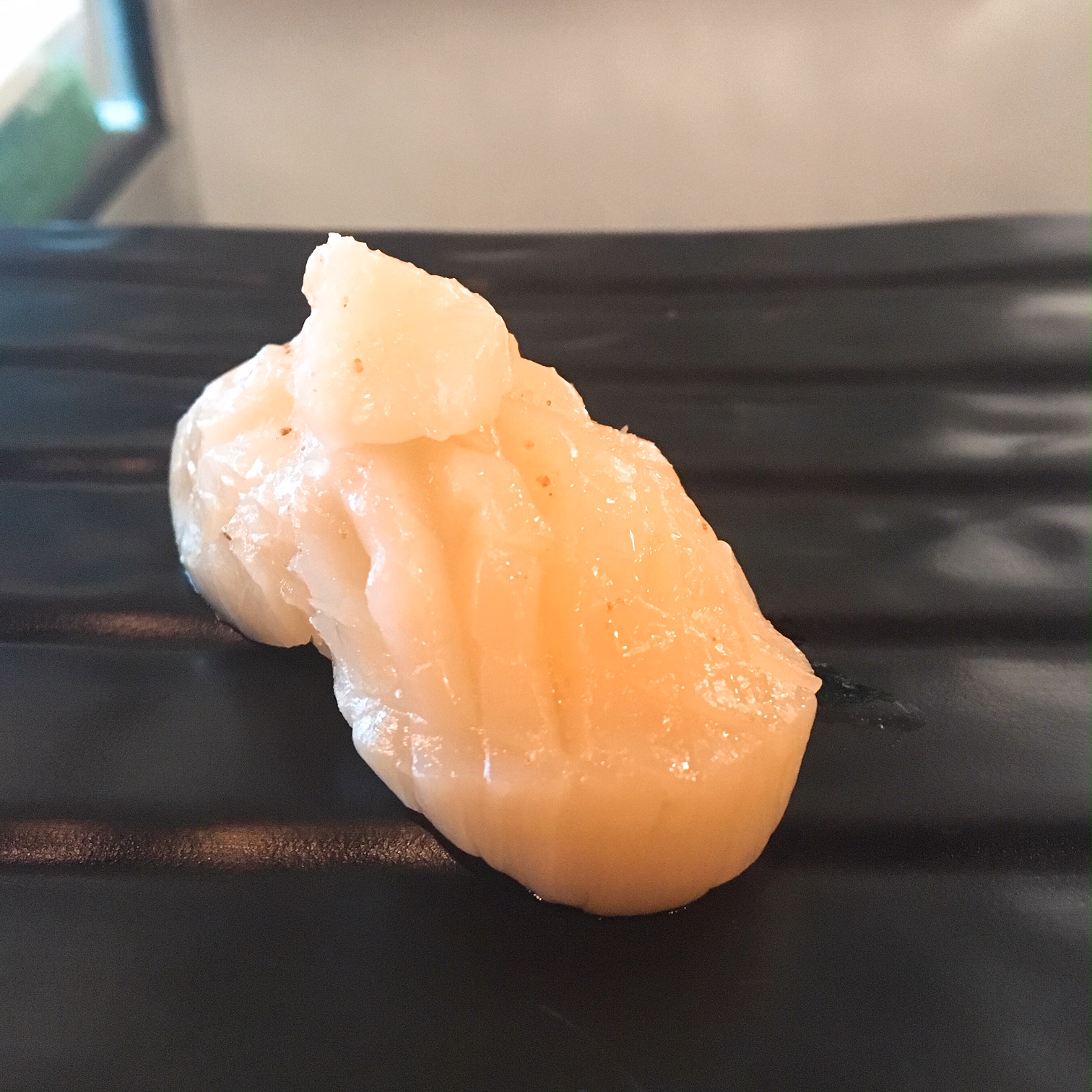 第二道上的是干貝握壽司,其實我蠻愛吃干貝,這個干貝吃起來很新鮮,口感細膩鮮甜而且無腥味,我個人很喜歡。