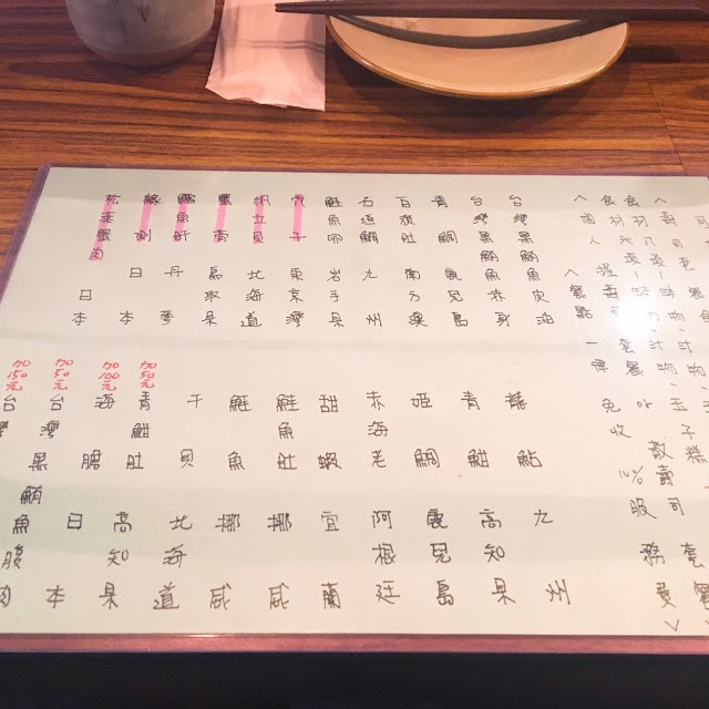 澐壽司是吧台式的,吧台算滿長的,但澐壽司一次只能接待八位客人,應該是只有一位師傅的緣故,開始消費時會有一位女服務生,先解釋澐壽司消費方式,我覺得這樣很好,會讓沒來過的人很快知道怎麼點,澐壽司有規定低消每人NT$ 250,我覺得這個價位很合理,隨便點一點都不只了吧。