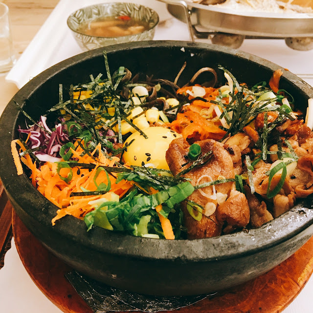 朋友點的是韓式石鍋飯,石鍋飯份量蠻多的,朋友也差點吃不完,飯吃起來有焦焦的口感,味道非常棒,朋友很喜歡這個套餐,除了吃起來口味層次豐富之外,蔬菜也滿滿的非常健康,很建議大家可以點來吃看看,非常好吃。