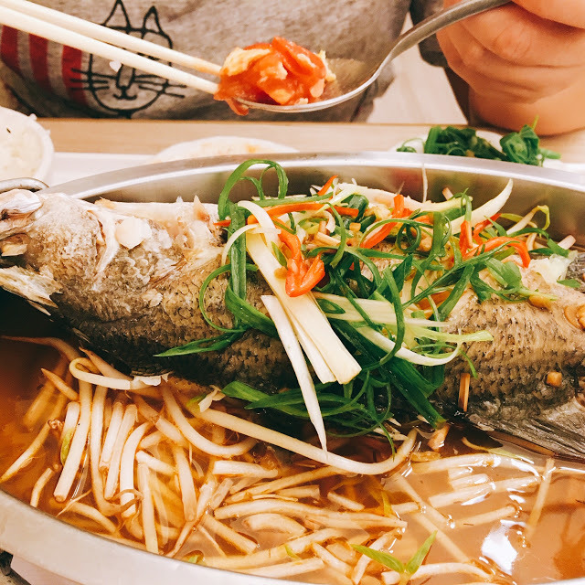 朋友點了泰式清蒸檸檬魚套餐,份量非常多,我個人很喜歡這個套餐,酸酸的檸檬魚非常好下飯,我很喜歡這個套餐,魚肉也非常新鮮,我其實不太吃酸的人,但我直覺這道菜很可以,連我不太吃酸的人都可以接受,很建議大家可以單點來吃看看,真的非常開胃。