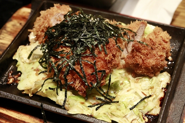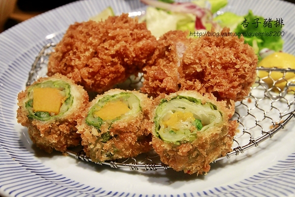外皮酥脆的豬排搭配野菜 特別是豬排吃起來鮮嫩多汁 外皮把肉汁完全鎖住