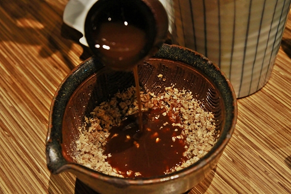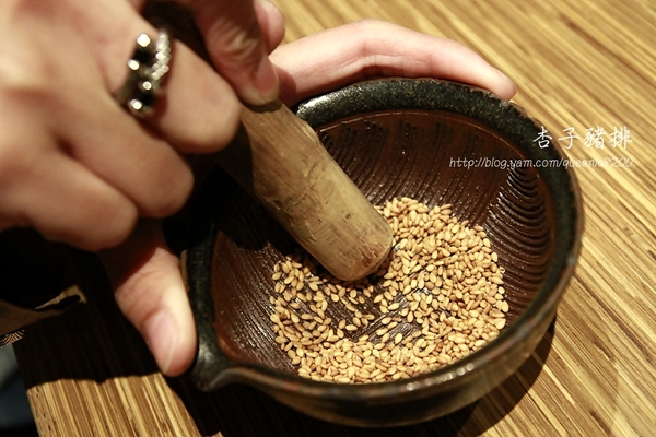 認真的把芝麻粒給摩碎 陣陣芝麻香氣飄散出來