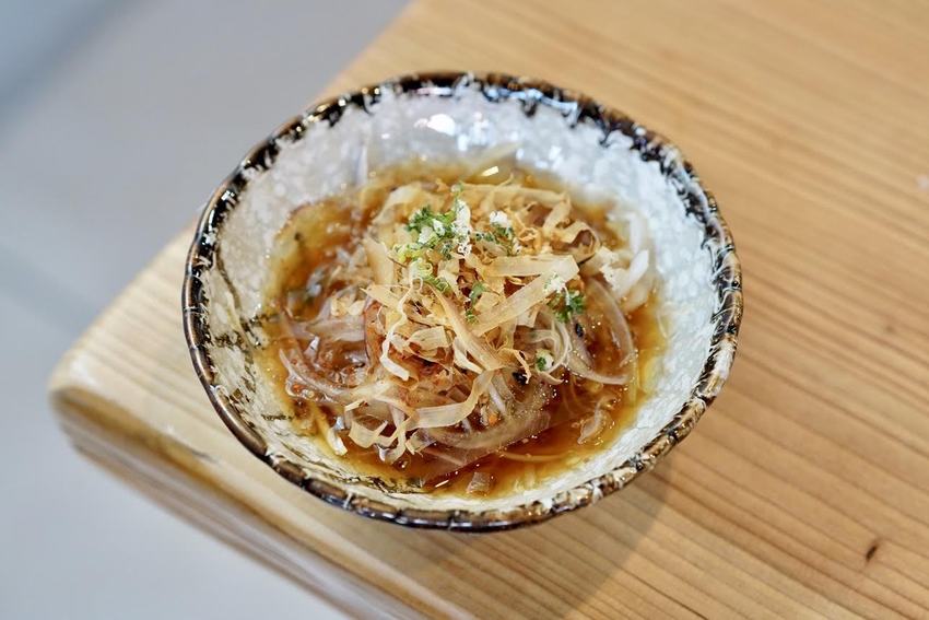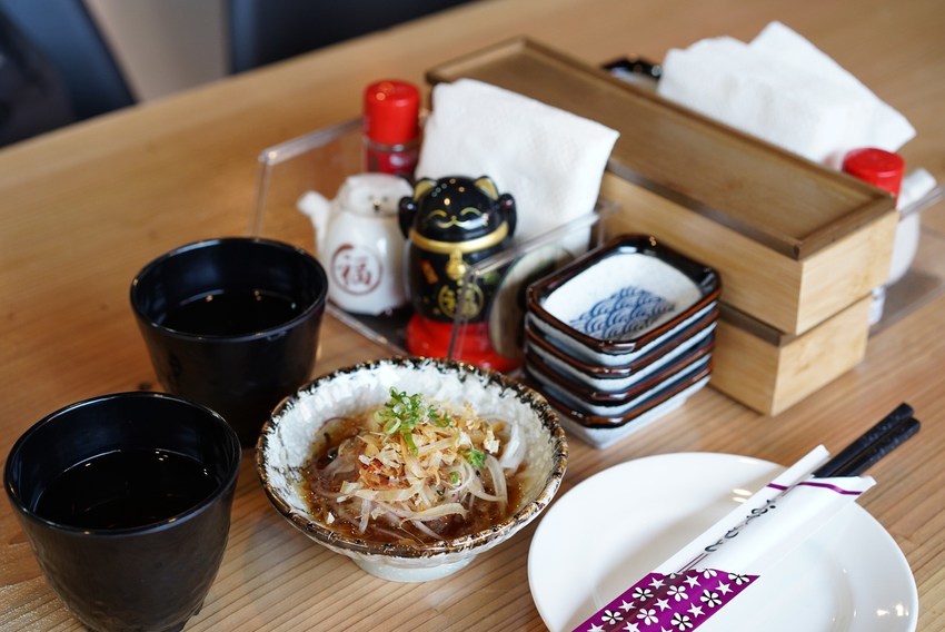 入座後,服務人員會送上招待的開胃小菜,是洋蔥絲佐和風醬,酸甜的滋味令人上癮,根本是開胃小品呢!
