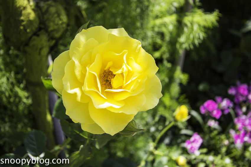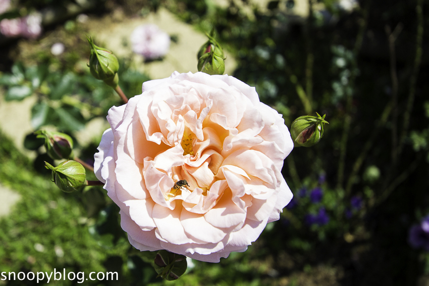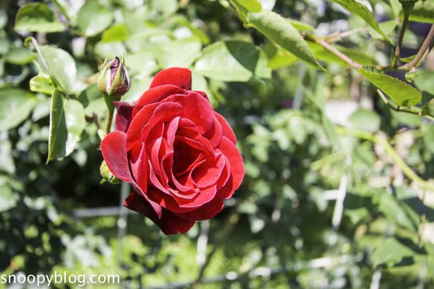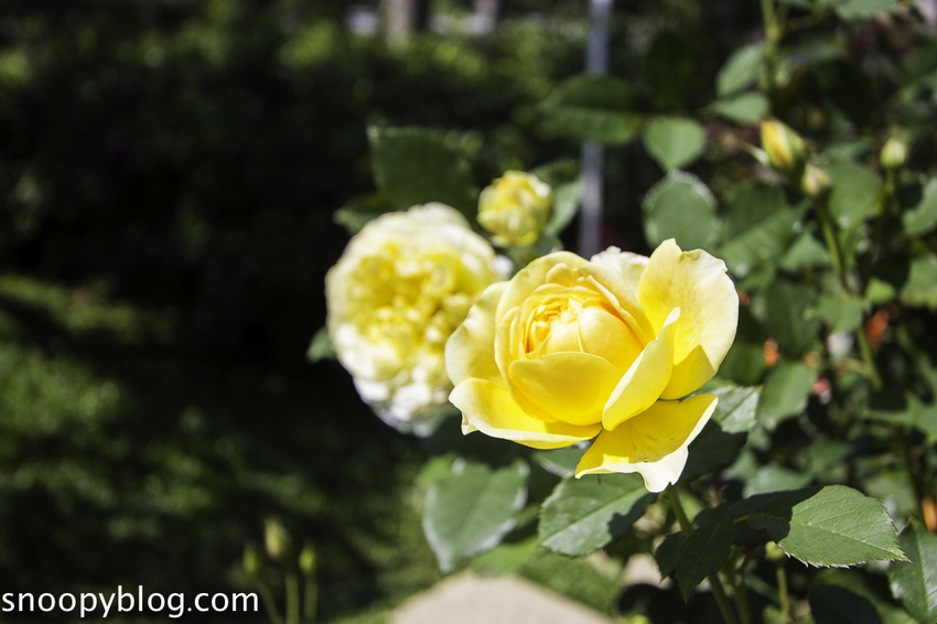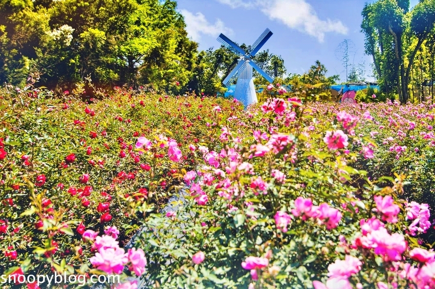 現在正值玫瑰花季,玫瑰花園裡各式各樣的玫瑰爭奇鬥豔綻放著。