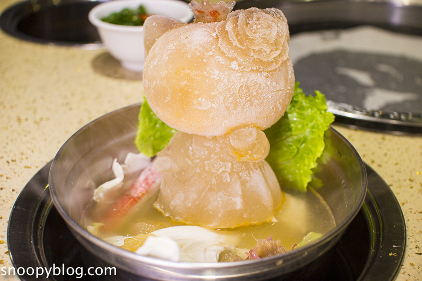 最吸睛的還有泰迪熊與Hello Kitty造型湯頭冰磚以及芭比娃娃肉盤,