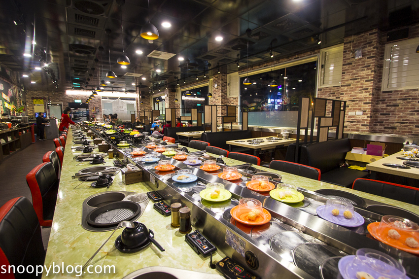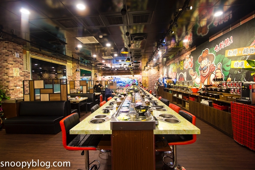 用餐空間寬敞,中間長長迴轉火鍋區搭配高腳座椅,
