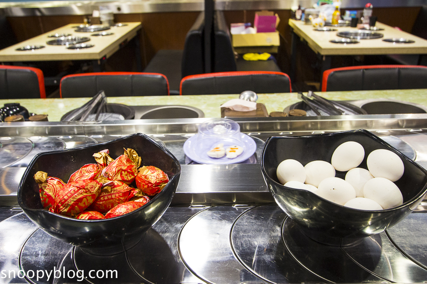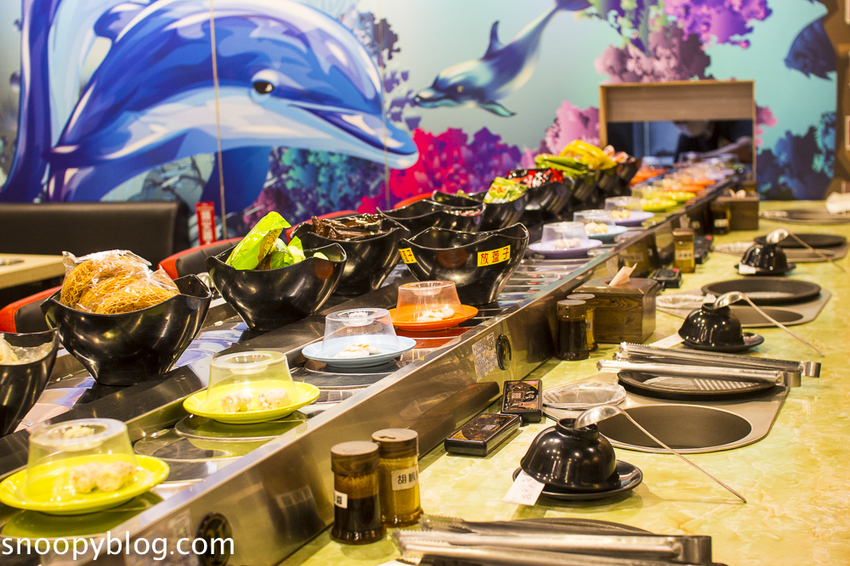 迴轉區各式各樣的火鍋料不停的旋轉著,