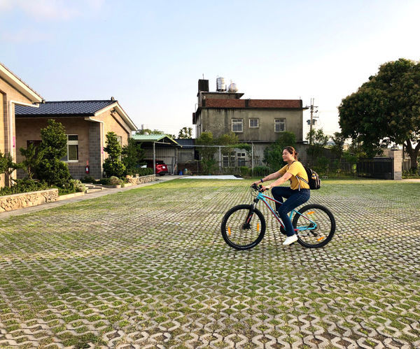這裡是可以自己取用的腳踏車區,讓妳可以在園區與騎車到園區外欣賞苗栗公館民宿附近的美景。