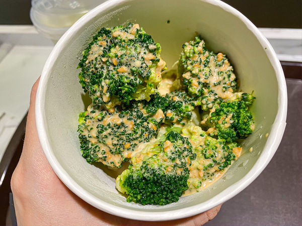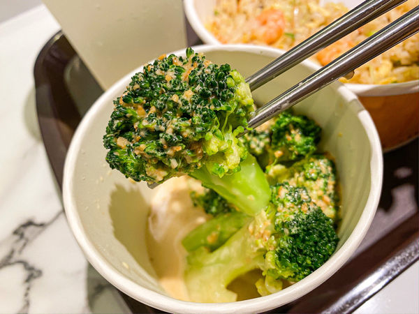 胡麻醬日式風味很順口!冰冰涼涼的花椰菜,整個很清爽搭配炒飯很解膩