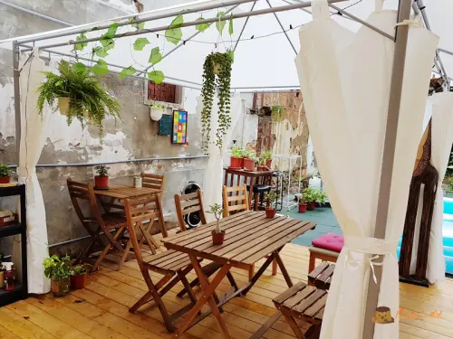 而且庭園還有這搖椅,坐著搖搖,看著在這邊出沒的貓咪,這庭院的美好真的太棒了!