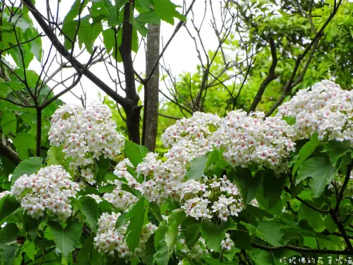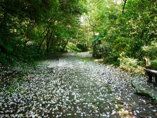 往石門路96號麗景山莊沿路桐花盛開,宛若雪景