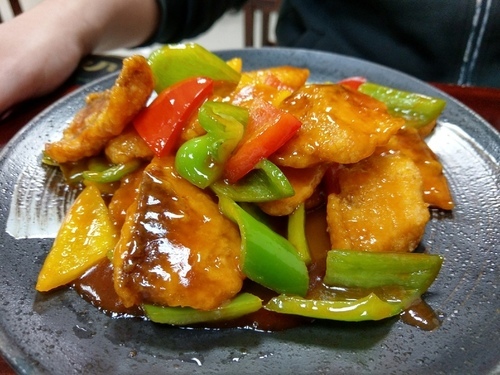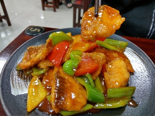 糖醋雕魚片這道是熱炒區的料理,小胖很喜歡吃雕魚片,忍不住點來吃看看,