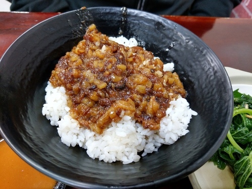 跟乾拌板條一樣的滷肉醬汁,加在飯上也一樣很美味。