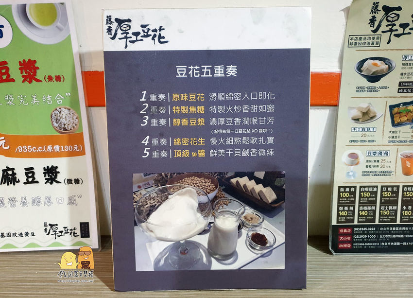 然而在藤香厚工豆花中,最特殊的就是他的豆花五重奏