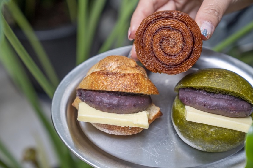 剛上桌圓法熱騰酥香,焦脆愈嚼愈香,大片帶鹽發酵奶油與微甜綿密紅豆泥甜鹹交織,個頭不大卻十足討喜,會愈吃愈涮嘴