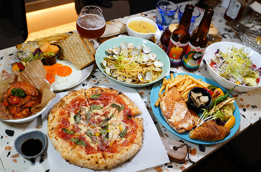 超過50樣以上的餐點可選擇,吃輕食、早午餐、澎派餐點、手作拿坡里披薩、小酌都很適合