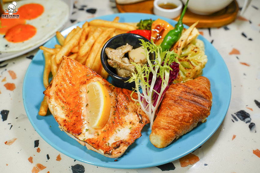 一份可以當兩餐吃,還有丹麥麵包、脆薯、烤蔬菜搭配