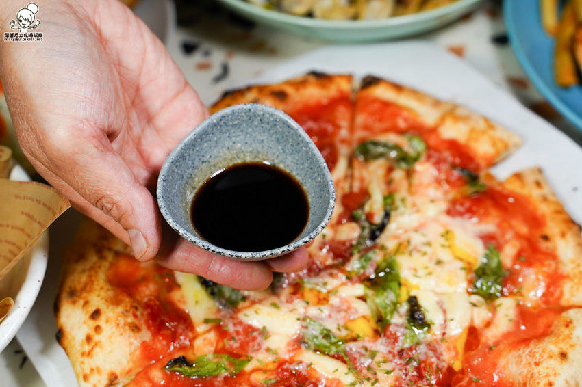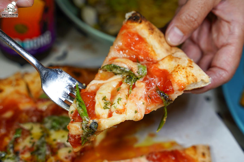 九層塔香氣也被引出,三兩下被解決的手工拿坡里披薩