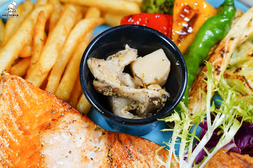 一端上來有讓我驚艷到,一般市面上簡餐不會用這麼大塊的鮭魚肉(通常都是1/2塊)