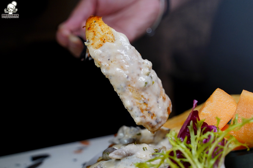 帶有濃稠度的蘑菇醬,很大塊帶有厚度的雞胸肉、不柴軟嫩好吃