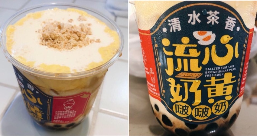 流心奶黃啵啵奶是將鹹蛋黃打成香濃流心奶黃醬淋在珍奶上層