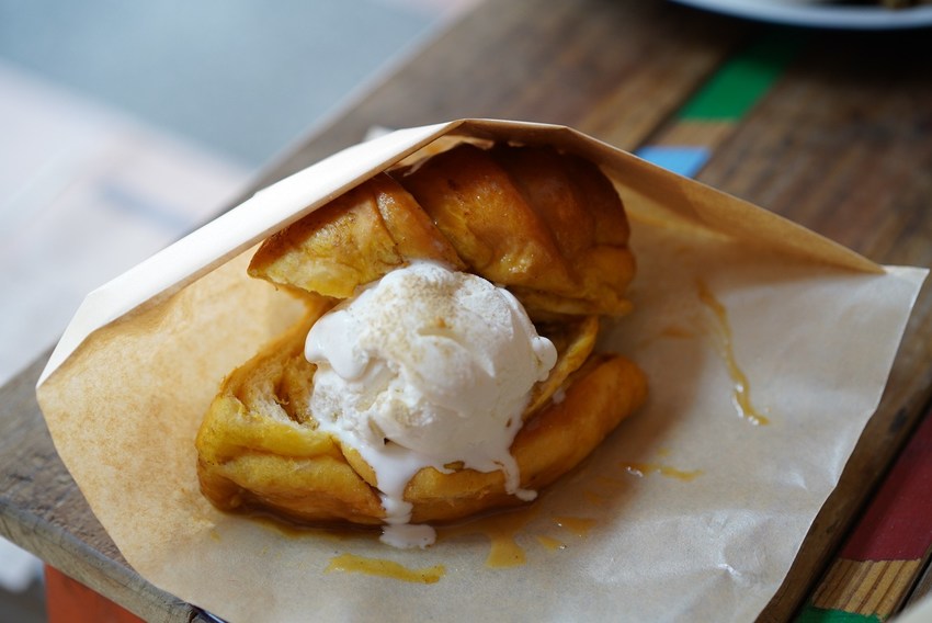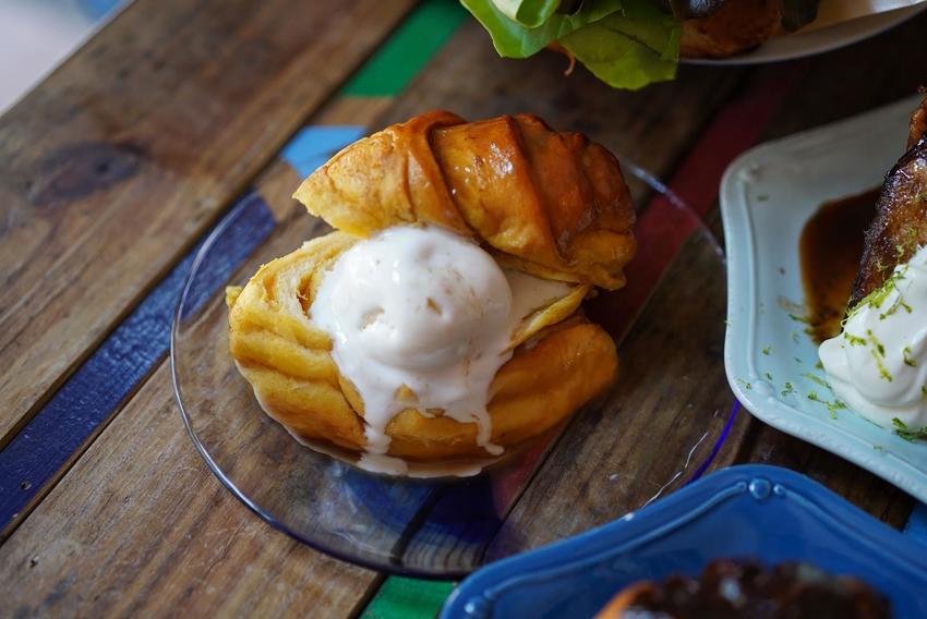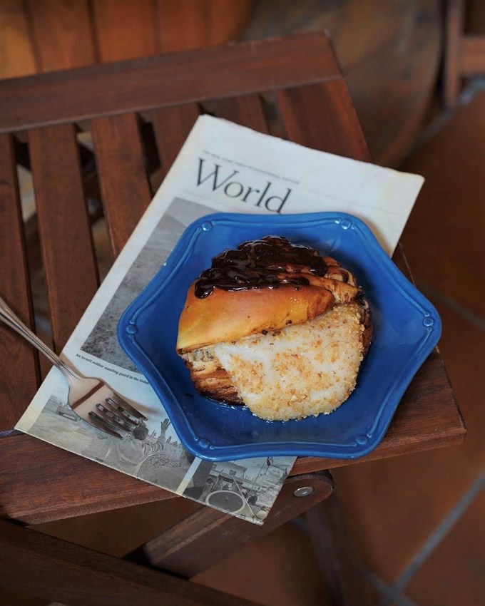 接著的「太妃糖肉桂捲」也不錯,雖沒有巧克力來的濃郁過癮,但加了一球香草冰淇淋後,能感受到冰火交融的口感。題外話,喜歡肉桂捲的朋友也可以選擇宅配,或是外帶回家回烤也行喔!