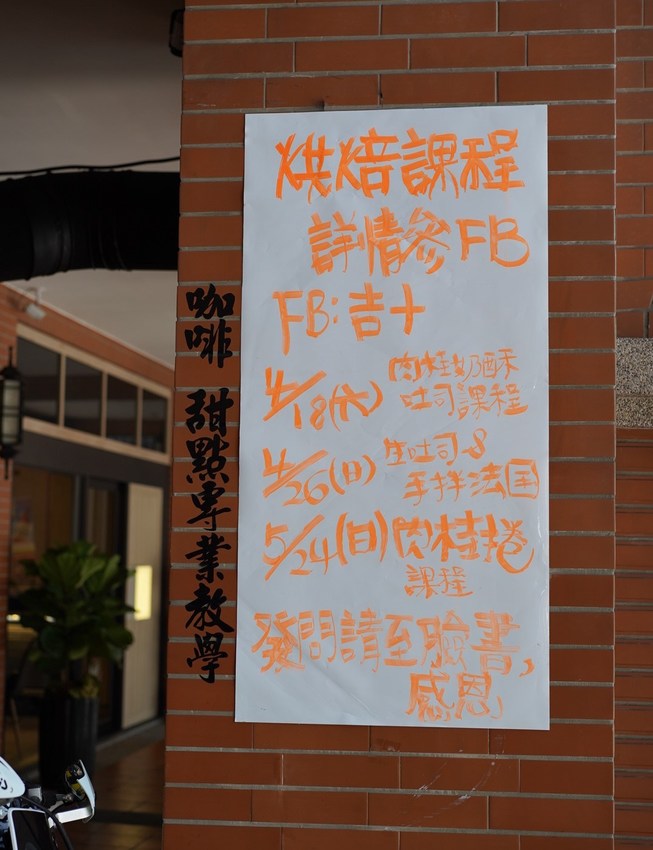 前面有提到吉十咖啡有提供最專業的甜點烘焙課程與教學,這張圖是門口牆上貼的公告,以下有為各位拍攝烘焙教室~