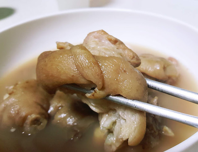 滷雞腳和滷豬腳的滷汁味道是相同的,一樣有淡淡的甘草香氣,味道相當獨特。