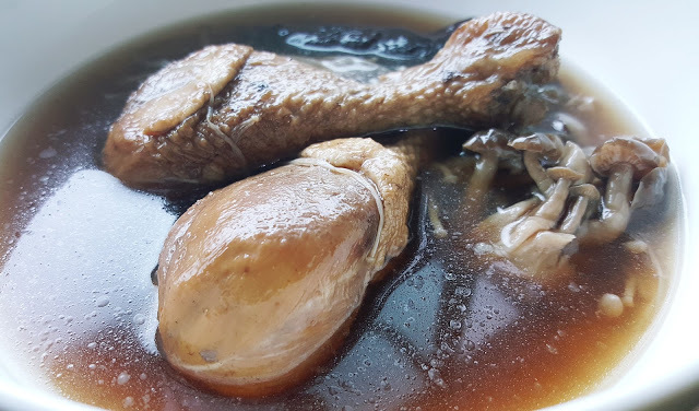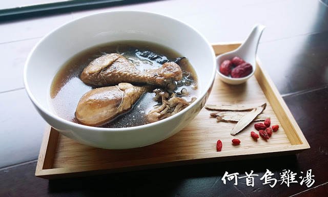 何首烏是珍貴的藥膳,藥性溫和,但功效很多唷!安神、補肝腎、養血、潤腸通便、治療心悸失眠、黑髮、強筋骨,還可增加抵抗力。平常自己要做何首烏藥膳有點麻煩,買人家燉好的加熱一下就好,非常方便。一包何首烏雞湯有兩隻雞腿,湯裡還有一些配菜,像是鴻禧菇、金針菇、木耳。