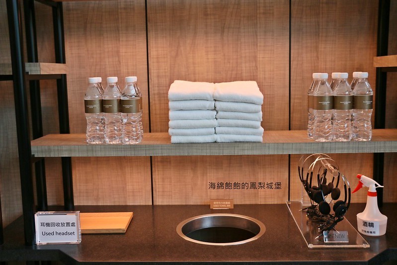 並提供礦泉水、毛巾、耳機,皆可自取!