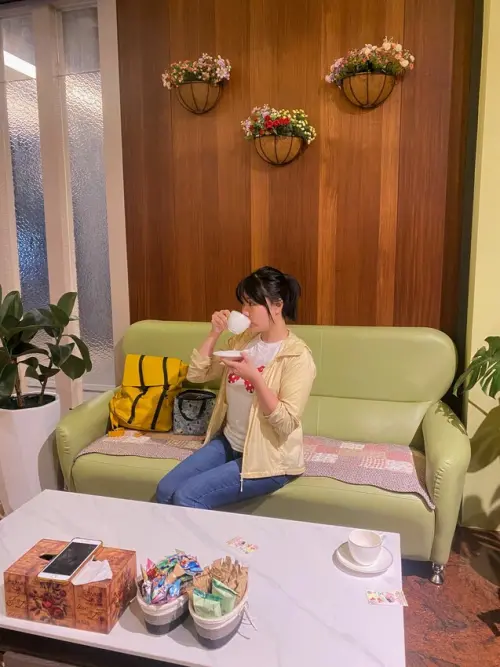 按摩之前櫃檯小姐遞上養生茶喝,裡頭有多種中藥熬煮,熱熱的喝很回甘,蔡媽媽很喜歡還不斷續杯...
