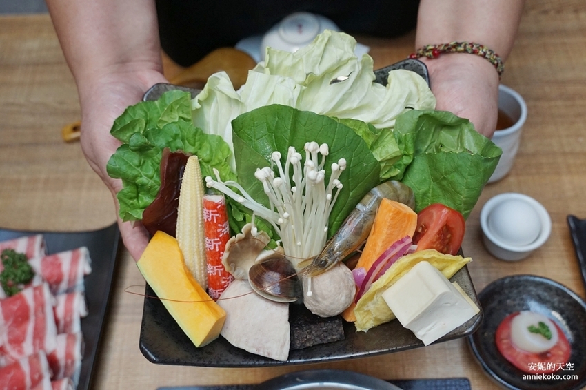 日式柴魚高湯湯頭也很香,澄澈金黃的湯頭像是黃金湯一般,放入海鮮肉類蔬菜都很好吃。