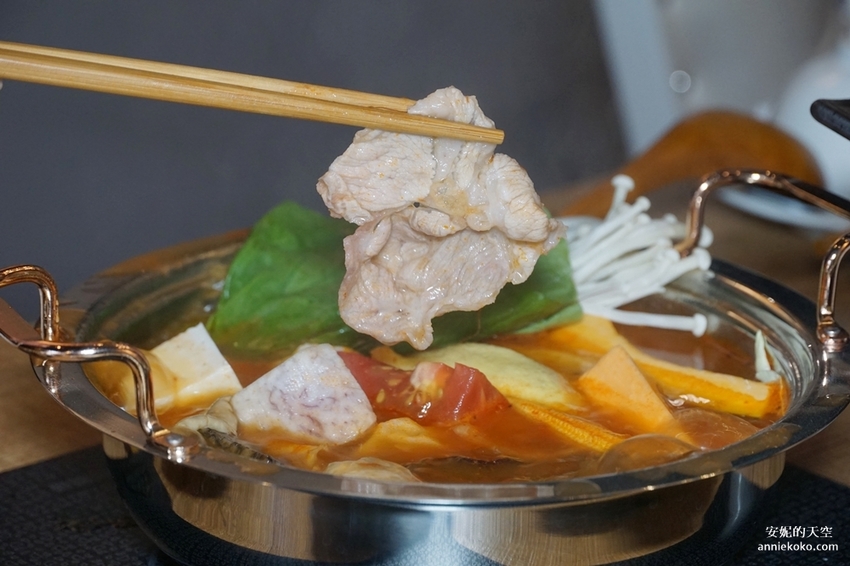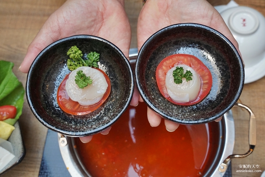 浸潤了各種蔬菜的義式番茄湯底在尚未涮肉片以及海鮮前很建議可以品嚐湯頭,果香芬芳很濃郁,酸度十足,我個人超級喜歡。
