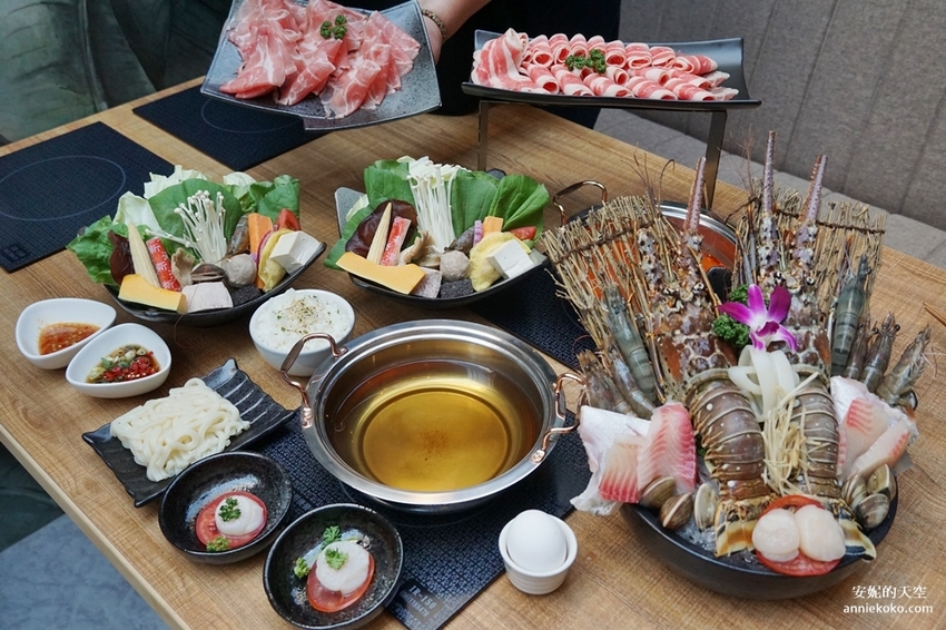 御鼎湯原本鍋物單價不算高,這天為了想要宣傳母親節檔期,於是跟好友點了海龍王雙人套餐,整個五月點這道鍋物直接加送一隻大龍蝦,加上開幕慶贈送的肉盤與干貝,這一整桌真的超級澎派。