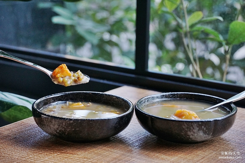 最後還有綠豆地瓜甜湯呢,店家自己熬製的甜湯代表著對客人暖心的心意,甜甜一碗入口,甜在舌尖也暖在心房。