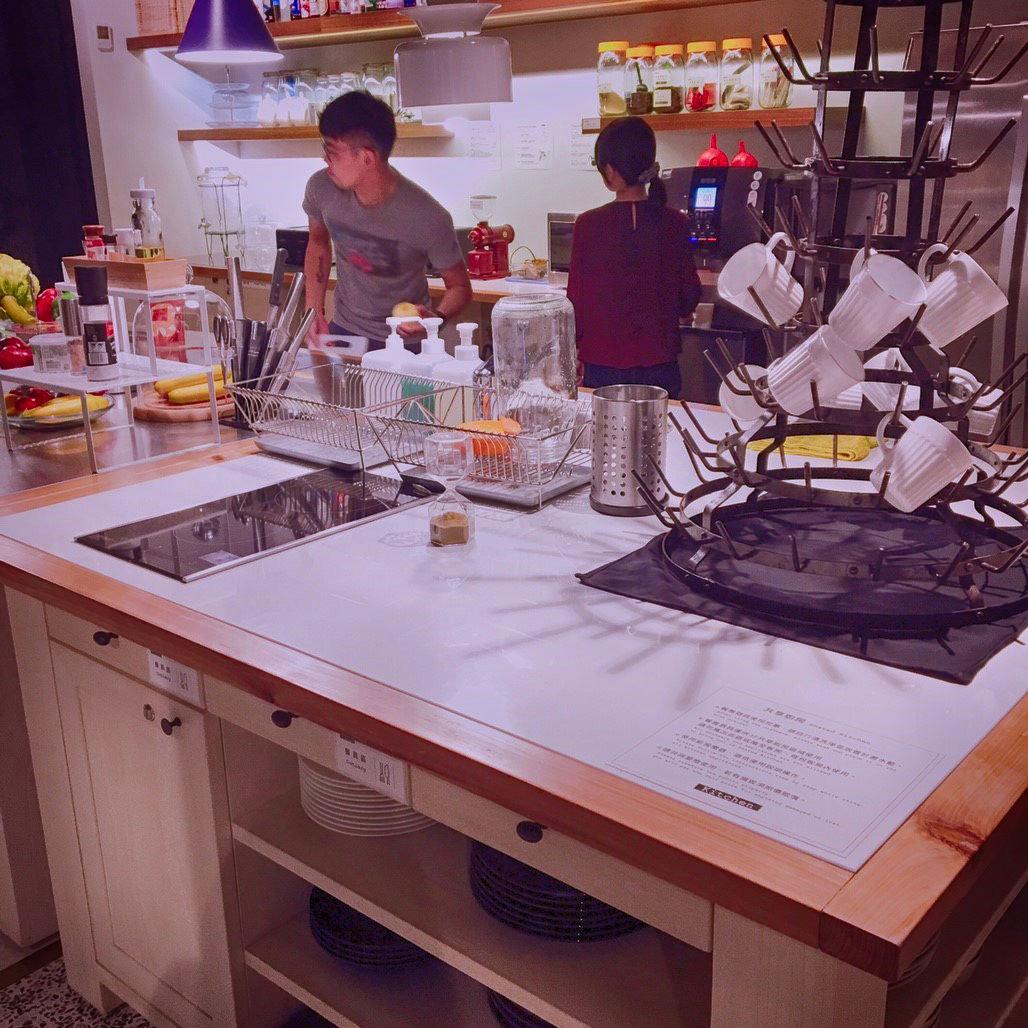 烤箱,同時還配置一名小管家在現場提供旅客各種諮詢。BALMUDA以中島廚房的型式,有各式餐具與簡單配置的冰箱、咖啡壺,最有品味的還有一台日本共享廚房,公共空間是我最讚賞的區域了!畢竟會當背包客的都是天生的旅人,喜歡交朋友、不怕生、愛好自由,在3樓整層樓的區域可分為