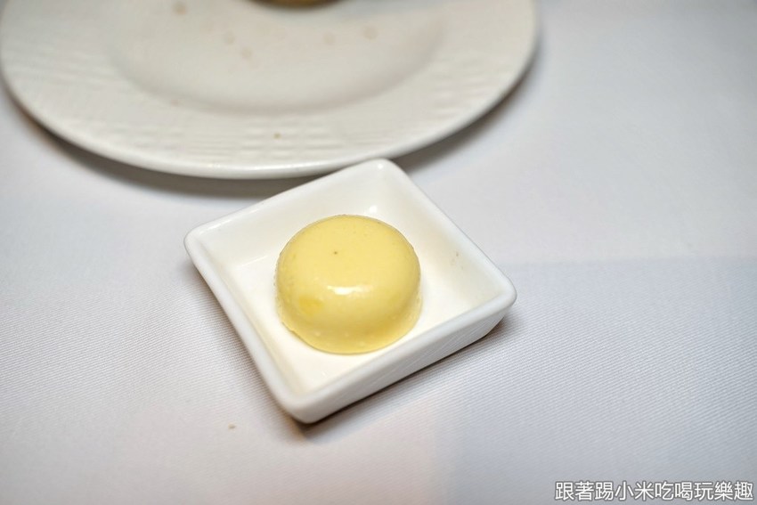 湯品可以在松露蕈菇濃湯、番茄海鮮濃湯、海鮮清湯及法式牛尾清湯四選一,會在上桌時才倒入湯碗中,好讓湯品的溫度維持,牛尾清湯在倒湯的時可是香氣四溢呢!