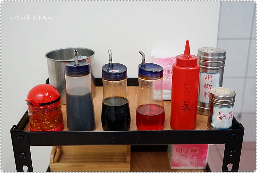 後方的醬料區有自製辣椒醬、黑醋、紅醋、椒鹽、胡椒粉、東泉辣椒醬,依照個人需要斟酌拿取