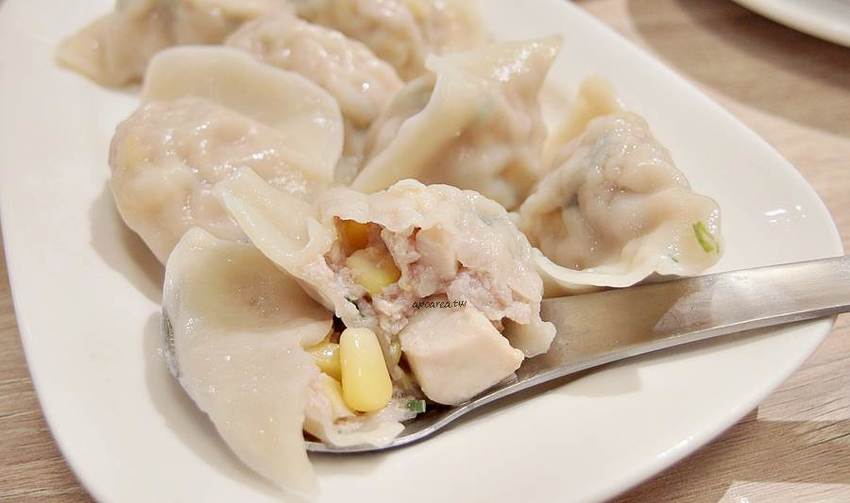 玉米水餃真的是小孩最愛,金黃玉米粒對我家小孩超有吸引力,裡面還有杏鮑菇,口感很豐富。高麗菜水餃就大眾化風味,口味比較保守的人點這來吃就對了!