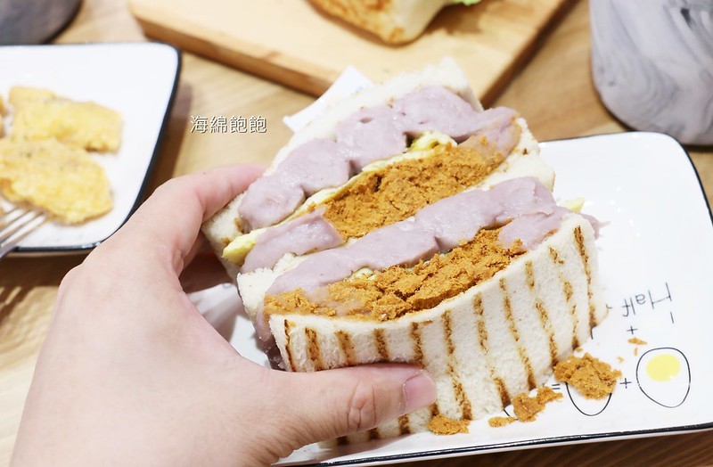 搭配了嫩蛋及肉鬆,吃起來甜鹹交織