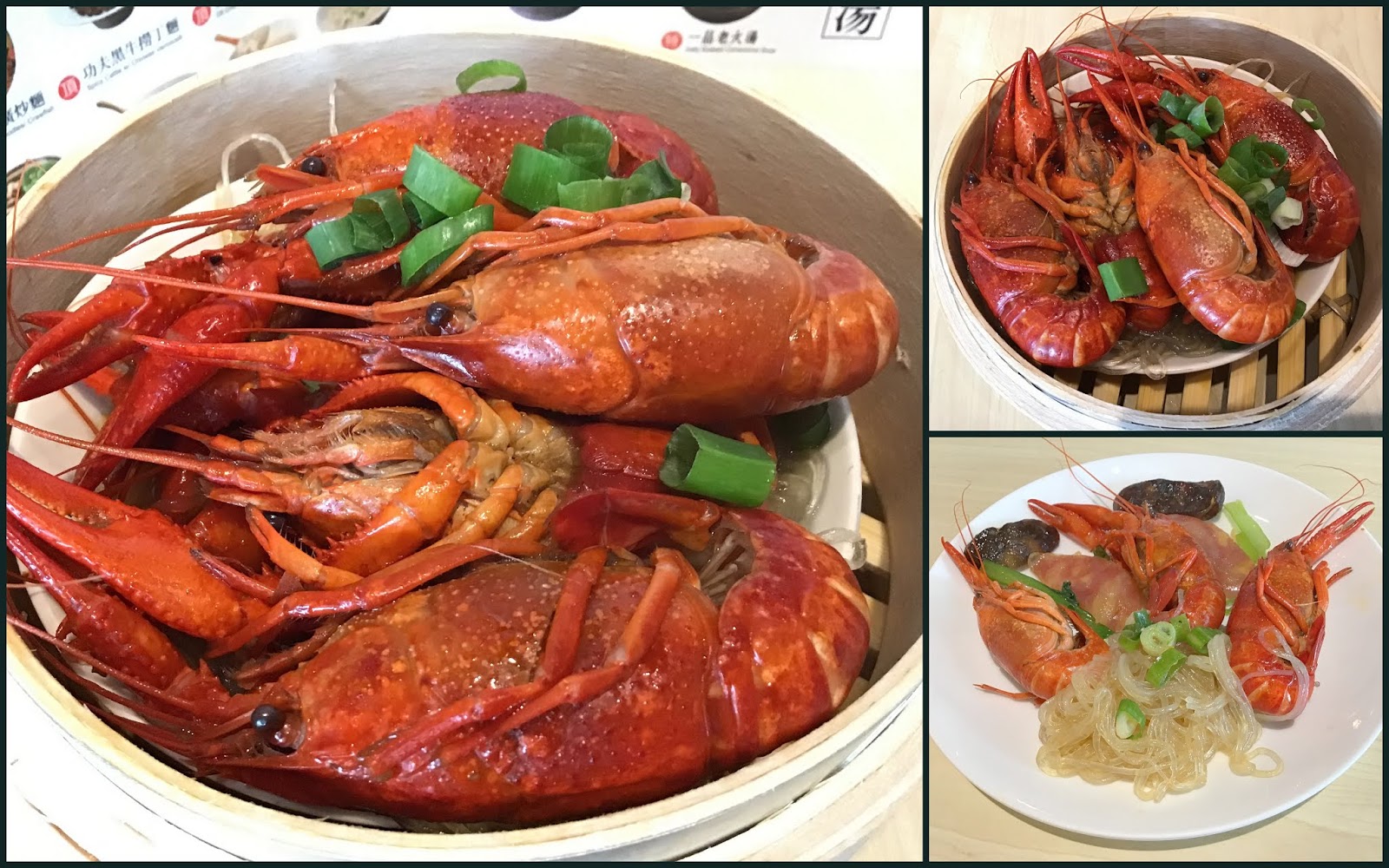 小龍蝦一籠有六隻之多,用粉絲墊底來吸附湯汁,