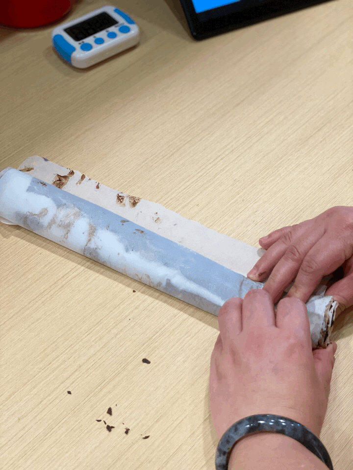 ▼冷藏完畢後就是伴隨療癒酥脆聲捏出巧克力脆片