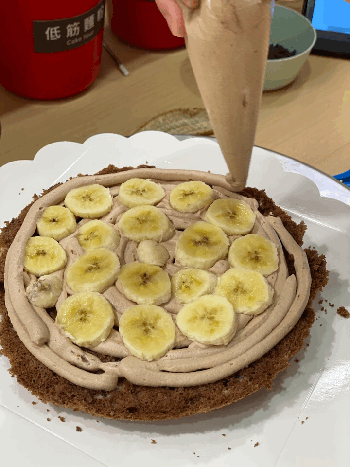 這應該是製作香蕉黑森林波士頓派最輕鬆的一步了XDD