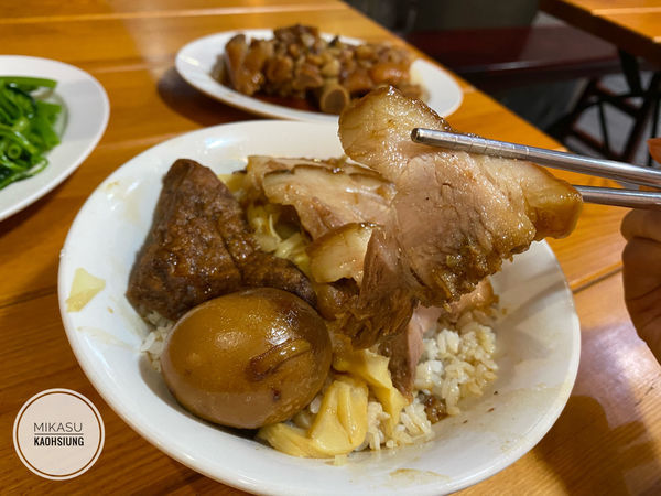 飯的部分其實整體看來滿小碗的,一般男生胃口可能吃一碗不會飽,滷汁的部分他們是用比較肥的肉下去滷,所以滷汁偏油一點、上面的肉塊也都是肥肉,不是我想像中稠稠甜甜的那一種滷汁,配飯會比較空虛一點,但還是可以接受的;腿庫的部分就是肥肉也偏多一些,雖然有滷透沒有豬肉味也滿彈牙,但我覺得肥肉部分沒有很入味,而且還是滿油的,不愛吃肥肉的可能還是要考慮繞道點別的。