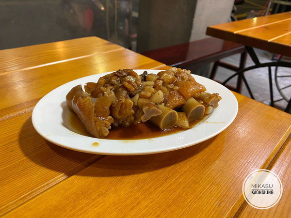 其實一開始豬腳有小小的失落感,因為我喜歡吃連滷汁都很甜膩的那一種,可是這就比較偏鹹一點,結果腿節扳回一成,腿節其實有是有點像外面賣的豬腳湯的中段,一塊切成兩截,份量上其實我個人覺得有點少,但是皮的部分滷得非常軟嫩!膠原蛋白完全浮出來的那種,吃進去一整個綿密的口感在嘴巴裡面化開,但不知道為什麼兩塊就是有一塊比較綿密超好吃、可是另外一塊就比較扎實,比較普通;帶筋的部分也是,一塊軟軟的帶點彈牙,另外一塊就偏硬,我覺得沒有煮得很透,不過有一塊融化我的心,雖然很貴但我認了(❁´ω`❁)*✲゚*